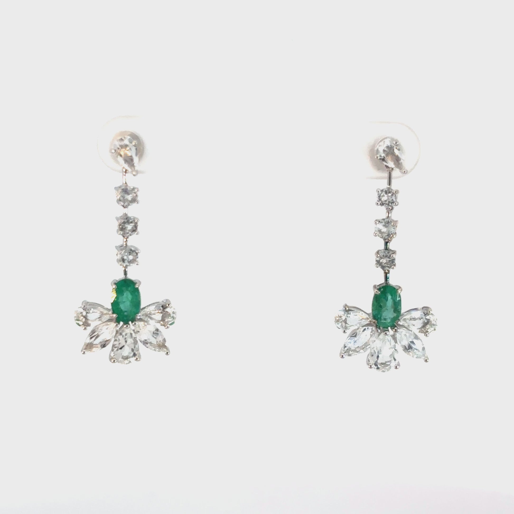 A great choice for that weekend gathering, the attractive centre stones are held by prong setting in 925 sterling silver. Accentuated by a cluster of colourless topaz. Hand made in Singapore.