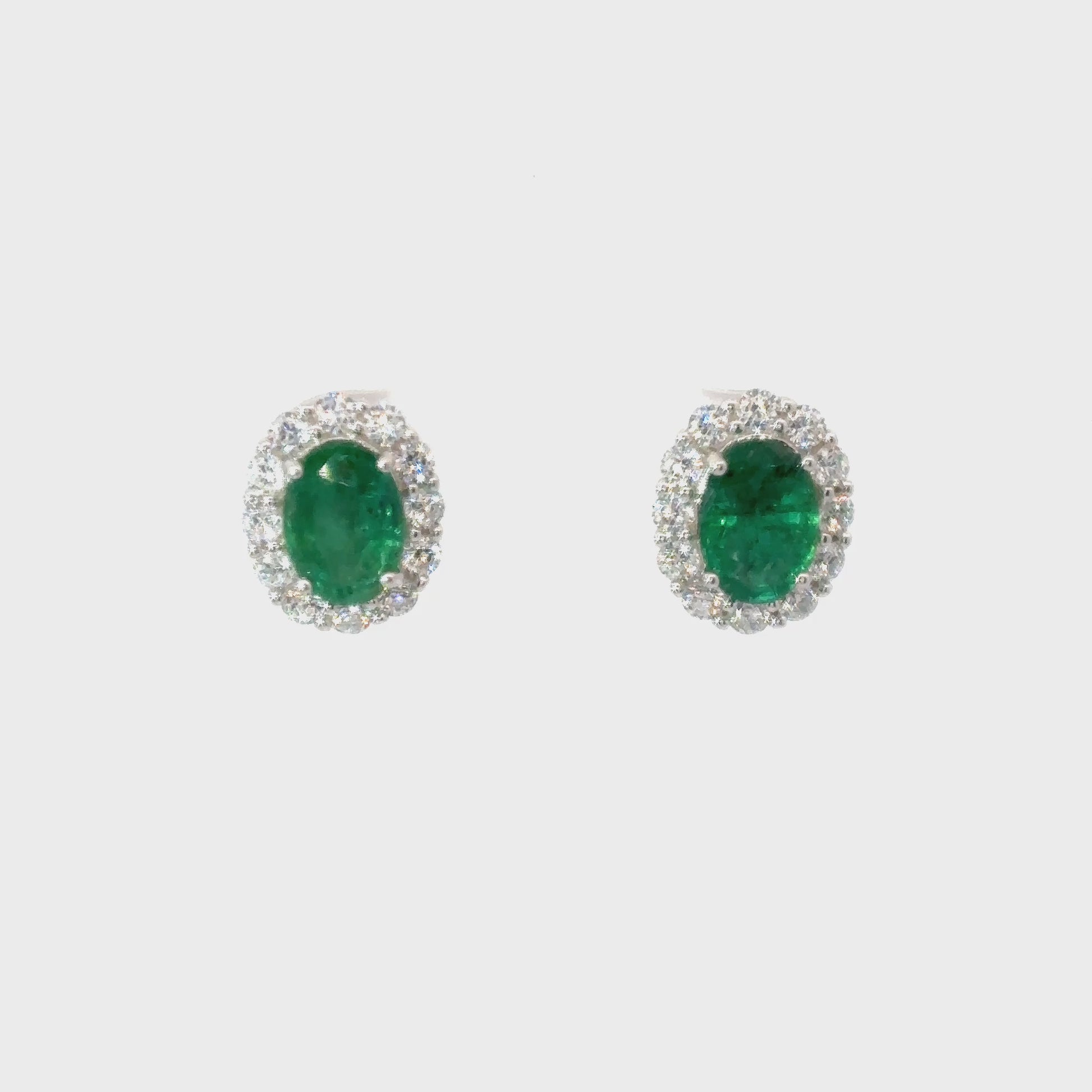 Emerald Stud Earrings with Classic Oval Halo