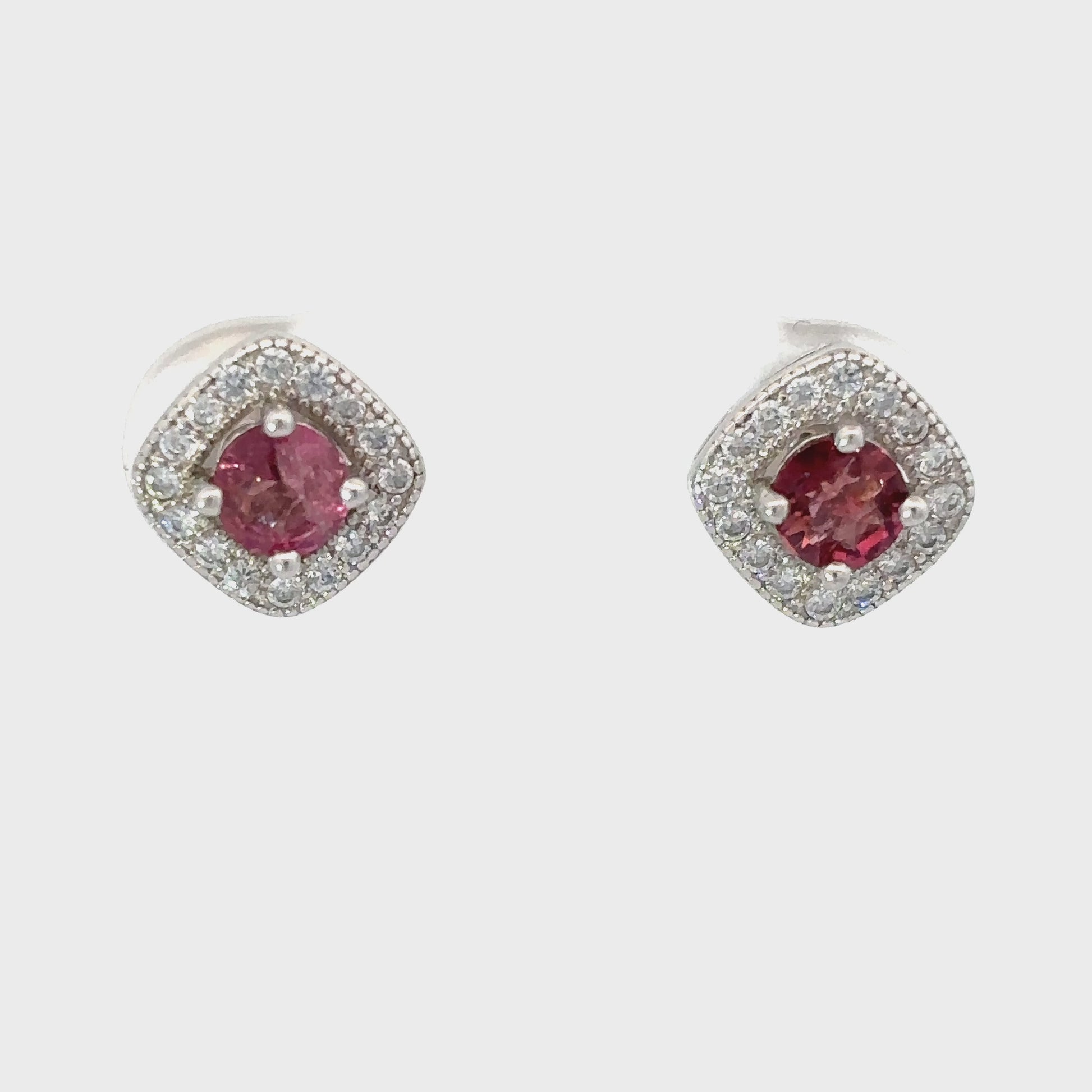 Tourmaline Stud Earrings with Single Cushion Halo