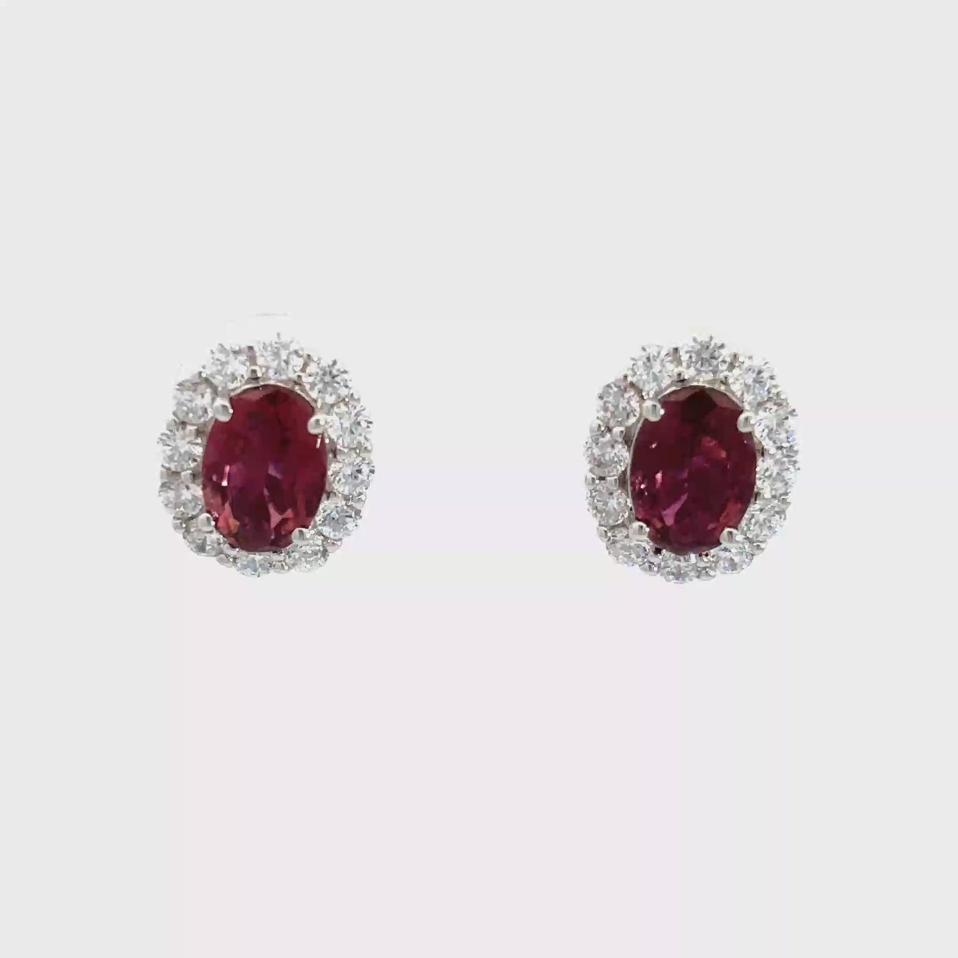 The reddish tourmalines are accentuated with a single halo of lab-grown diamonds for a classic confident look. Set in 100% recycled 925 sterling silver. Comes with a complementary piece of polishing cloth.